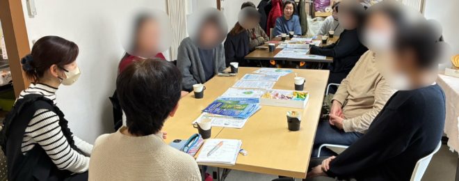 3月は第3金曜日が祝日のため、第2金曜日の13日に茨木市社会福祉協議会の主原分室にて今年度最後のあかね空サロンを開催しました。 スタッフも交えて自己紹介したあと、2つのテーブルに分かれておしゃべりスタート。 学校での過剰適応への対処、LDの場合の進学先、高校で留年した場合の対応、移動支援…